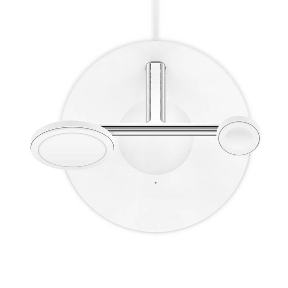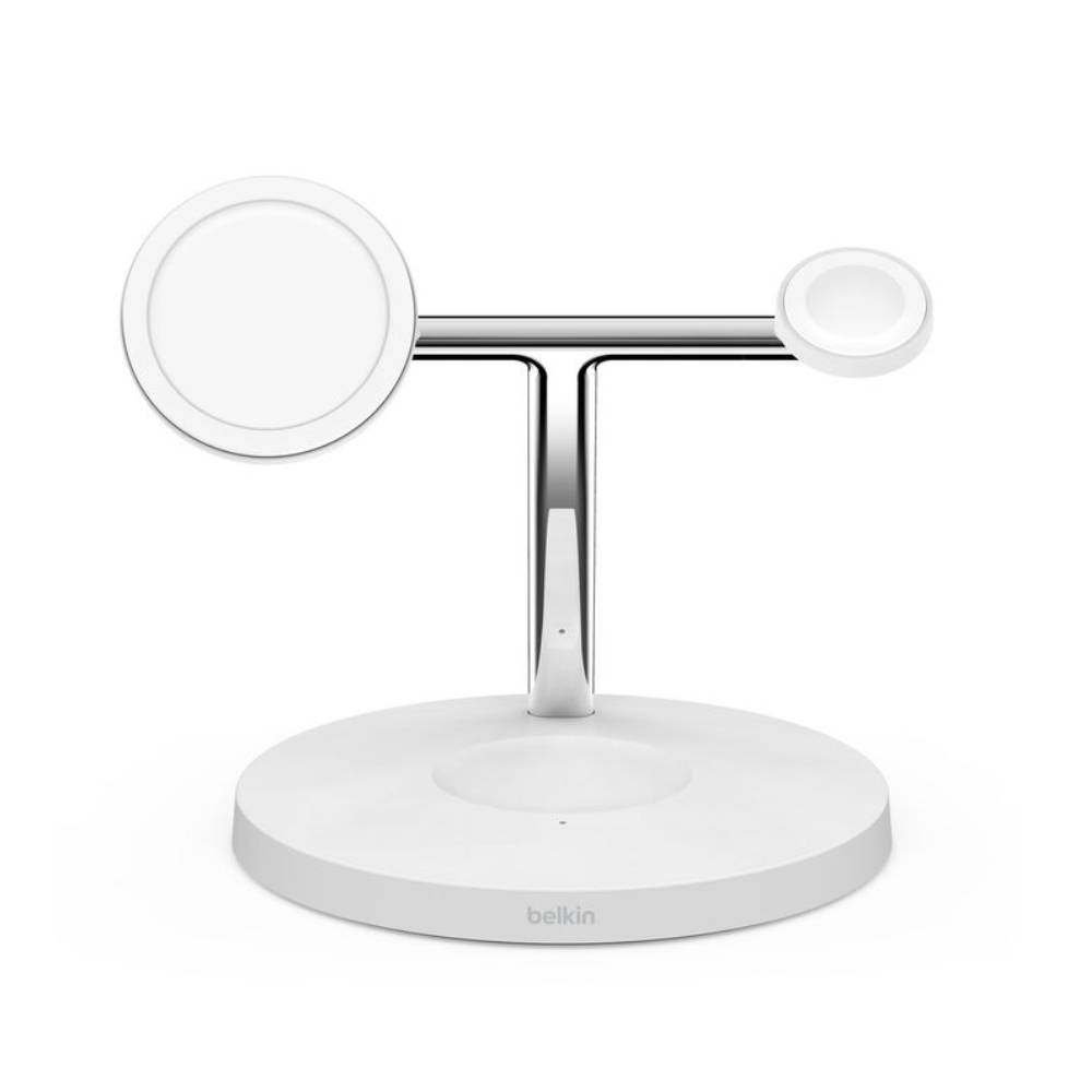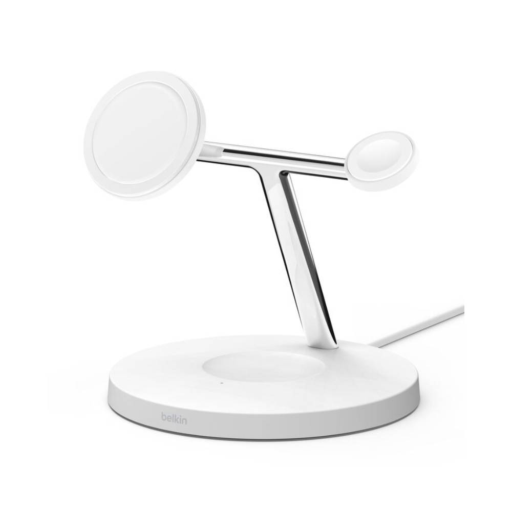 La base de carga inalámbrico BoostCharge Pro 3 en 1 de Belkin está diseñada para ofrecer una experiencia de carga rápida y eficiente con un diseño moderno e inspirado en la arquitectura. Incluye tecnología MagSafe oficial, compatible con iPhone de las series 12 a 16, y un módulo magnético de carga rápida para Apple Watch Series 7 y posteriores. Podés comprarla en Rossellimac, donde encontrás siempre los mejores accesorios Apple.