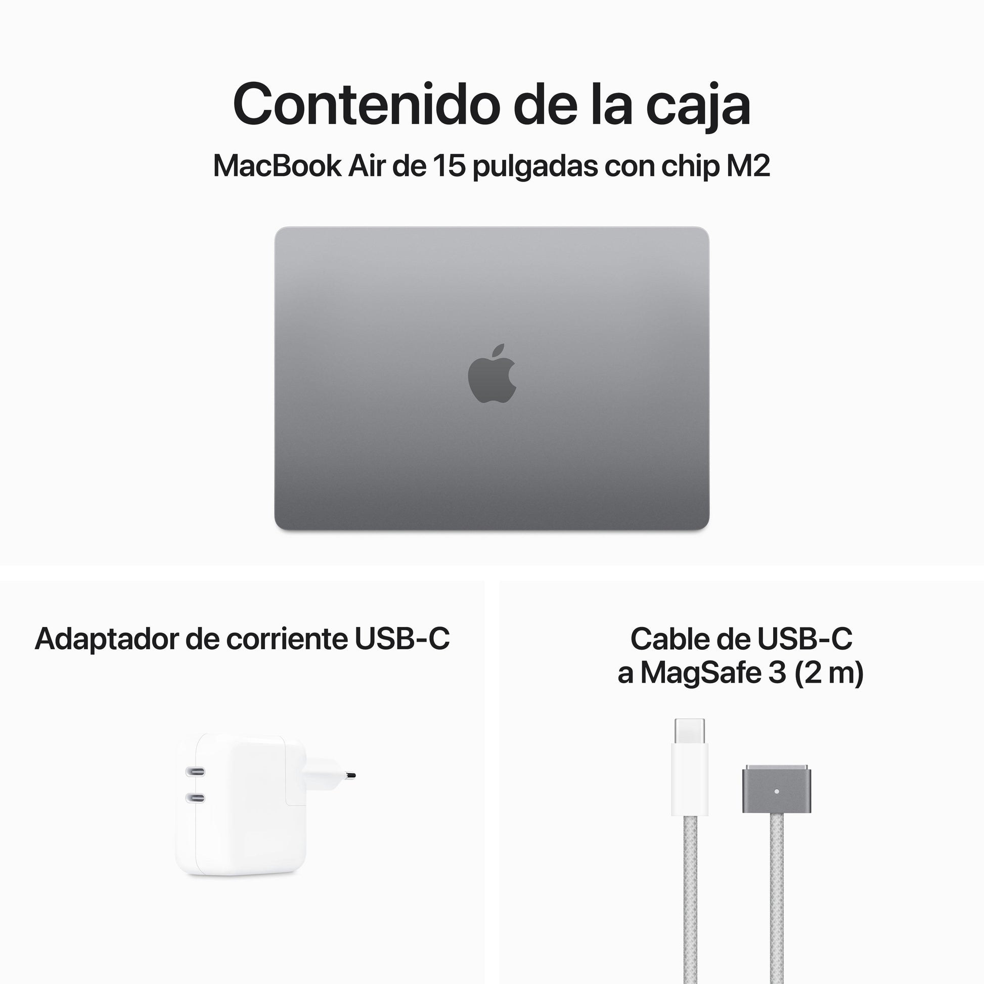 El MacBook Air de 15 pulgadas con chip M2 en color Gris Espacial ofrece un rendimiento destacado gracias a su CPU de 8 núcleos y GPU de 10 núcleos. Con 8 GB de RAM y 512 GB de almacenamiento SSD, garantiza rapidez y suficiente espacio para tus necesidades diarias. Su diseño delgado y ligero lo convierte en la opción perfecta para quienes buscan un equipo potente, pero fácil de transportar. Ideal para trabajar, estudiar o disfrutar de tu entretenimiento favorito.